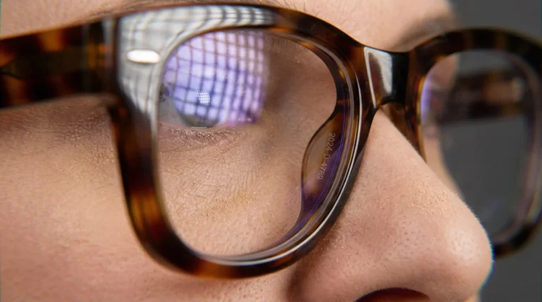 Gafas Yolanda Andrade bloquean fatiga visual bajo luces intensas de televisión.