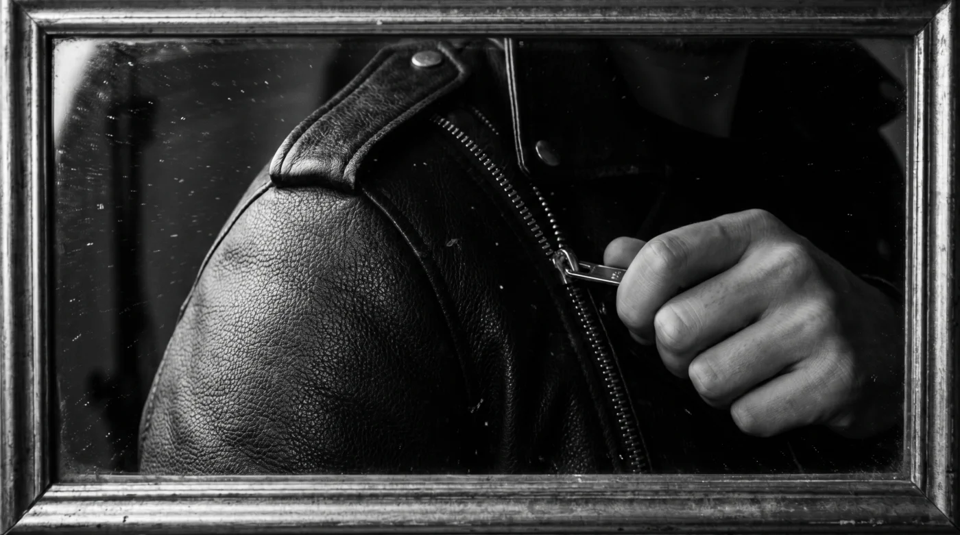 El roce del metal frío contra los dedos mientras tiras del cierre. Ese chasquido denso cuando el cuero negro mate, rígido y pesado, se ajusta finalmente contra el pecho. Hay una resistencia en el material que casi exige una mejor postura al instante, como si la prenda misma te obligara a cuadrar la espalda.
