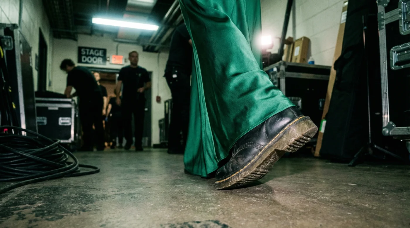 Escuchas el roce tenue de un vestido de seda a punto de acariciar el suelo. En cualquier gala tradicional, esperarías que a este sonido le siguiera el eco metálico y agudo de un tacón de aguja golpeando el mármol. Pero de pronto, el ritmo cambia. Escuchas un golpe sordo, pesado, con el inconfundible crujir del cuero industrial y la tracción de una suela de goma amarilla. No es un accidente de vestuario. Es una declaración de intenciones. Sientes de inmediato cómo la atmósfera del lugar cambia; las miradas se cruzan, los murmullos comienzan. Alguien acaba de romper el guion, y lo ha hecho con una comodidad insultante.