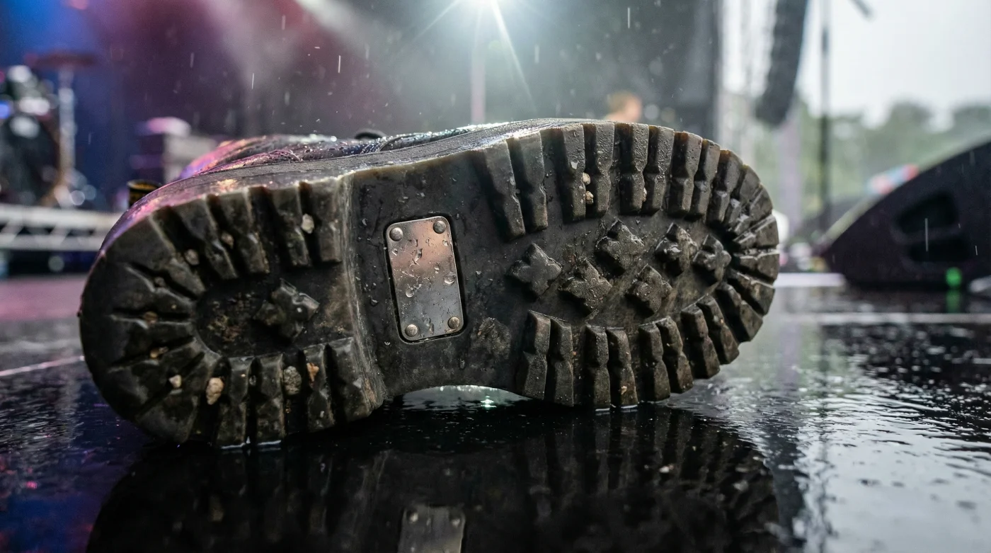 Pero la realidad tras bambalinas es mucho más fría, táctica y calculada. Mientras tú cantas a todo pulmón bajo tu impermeable, bajo el charol y los cristales incrustados de ese calzado ocurre un milagro de ingeniería física que casi nadie nota. Lo que parece un exceso de estilo visual es, en realidad, un ancla vital para la supervivencia física en medio del caos escénico.